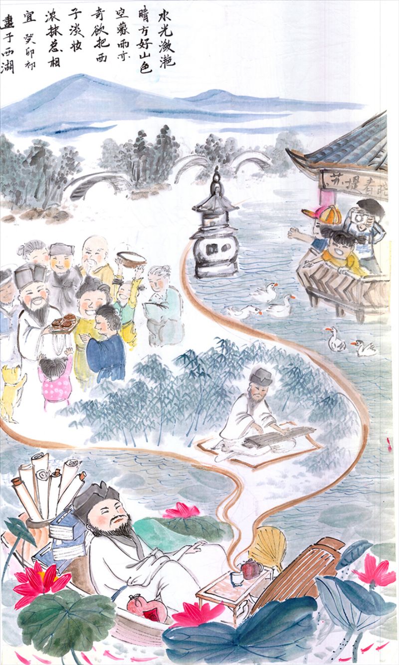 《忆东坡共绘杭州》