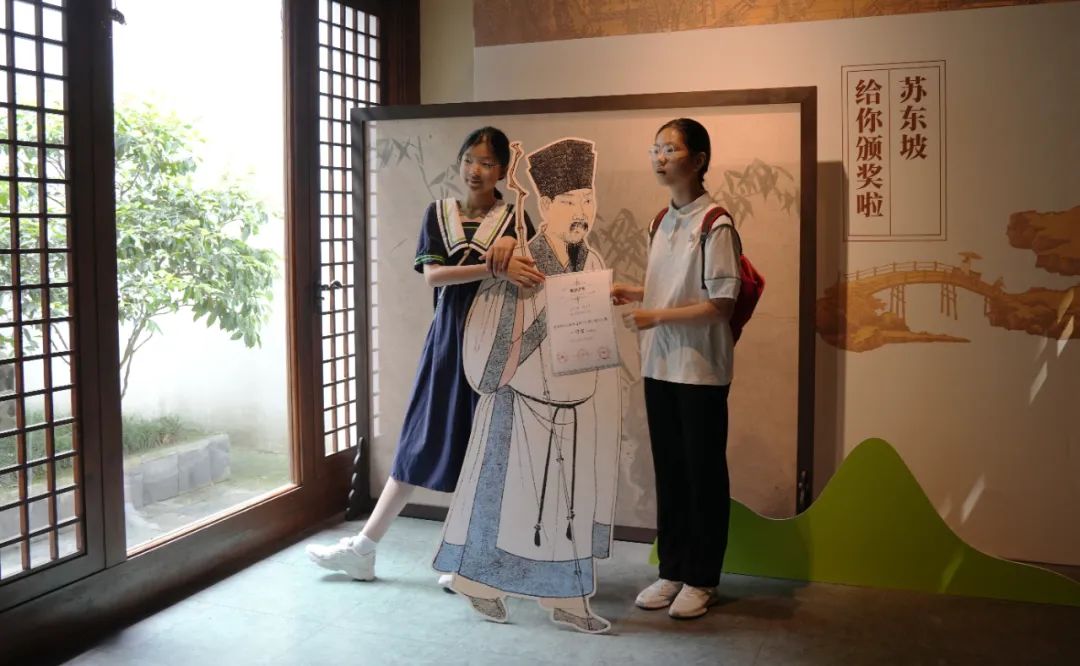 围绕“宋韵迹忆”主题,展览设置“苏东坡为你颁奖啦”互动打卡区,让获奖选手与“老市长”苏东坡来个亲密互动;配套“宋韵@亚运”答题闯关卡,让孩子们在观展的同时还可以通过题目学习宋韵知识。展览通过沉浸式场景营造、趣味化闯关打卡等形式,让宋韵文化可观、可感、可体验。
